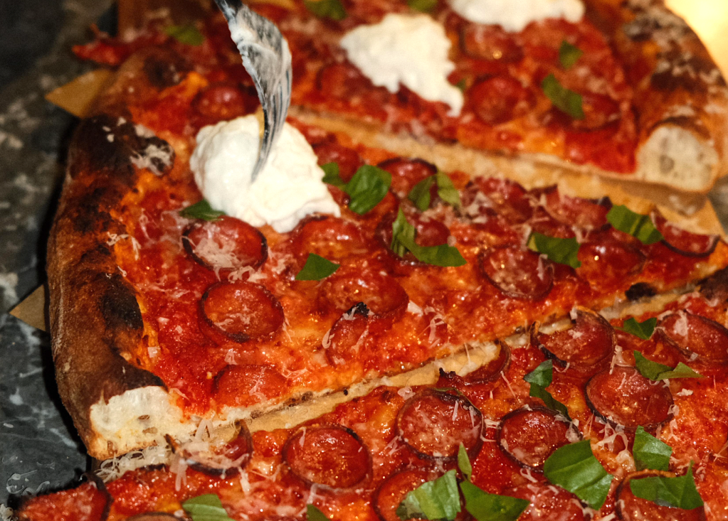The “Margherita de la Casa” keeps it classic with red sauce, mozzarella, and basil. The “Pepperoni Proper” is a favorite with cupped pepperoni and a drizzle of hot honey. The Instagram-famous “La Salsera” combines red and vodka sauces with pesto, tying it all together. Then there’s “Leeks on Bacon,” a garlic confit cream base loaded with mozzarella, leeks, and smoky bacon, and the “Mushroom Truffle,” made with a truffle cream and mushrooms. And don’t forget the “Kicks and Dips” that make each slice customizable. Think options like stracciatella, hot honey, red sauce dip, and the three-cheese version.