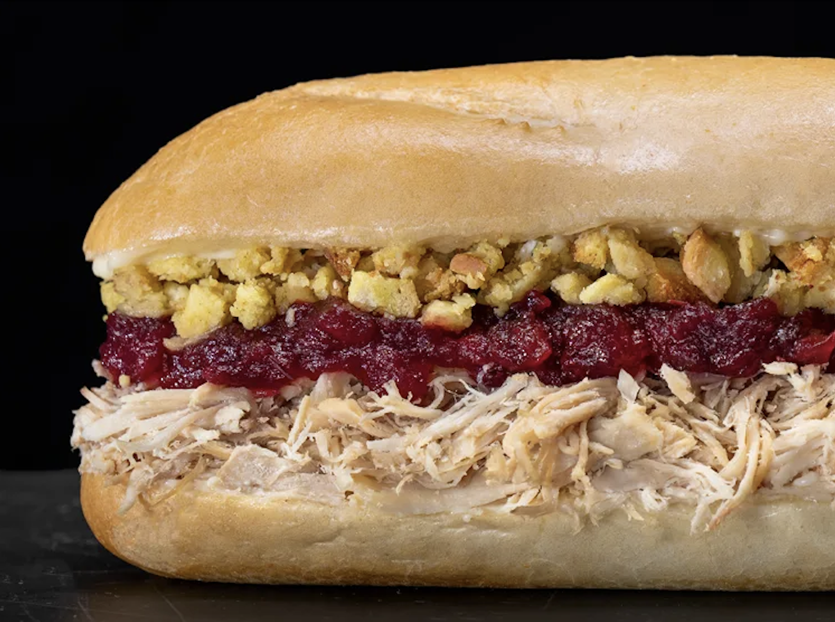 “The Bobbie” sandwich by Capriotti’s is made of slow-roasted turkey, cranberry sauce, and housemade stuffing.
