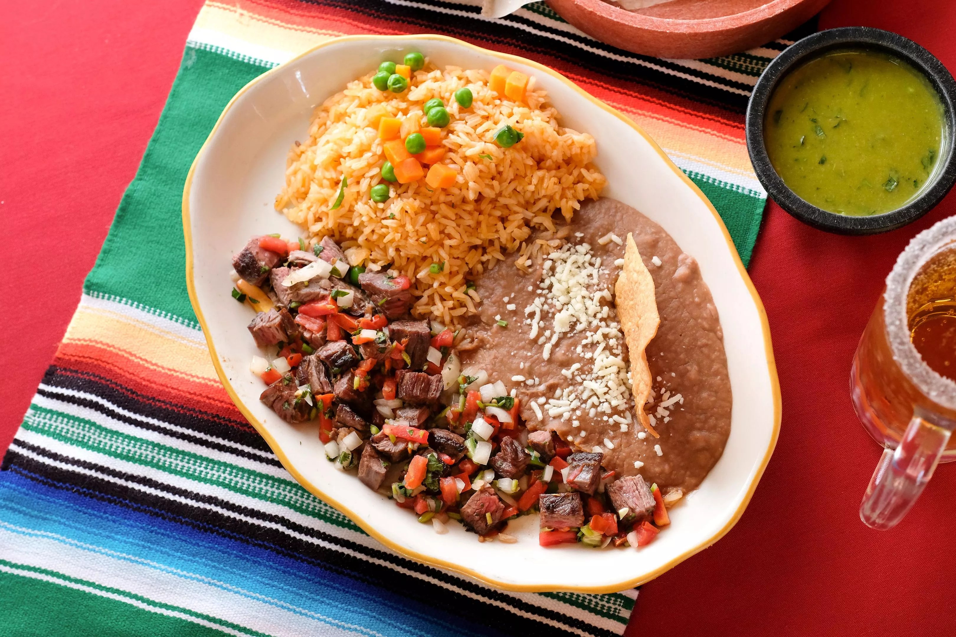 Entering the restaurant’s dining room, the sense of legacy is apparent. The space is homey and unpretentious in its Mexican-infused decor and furnishings. The sombrero-themed overhead lights, wall of displayed spices, bright tapestries, and Banda songs crooning through the speakers all come together in a gentle celebration of Mexican culture.