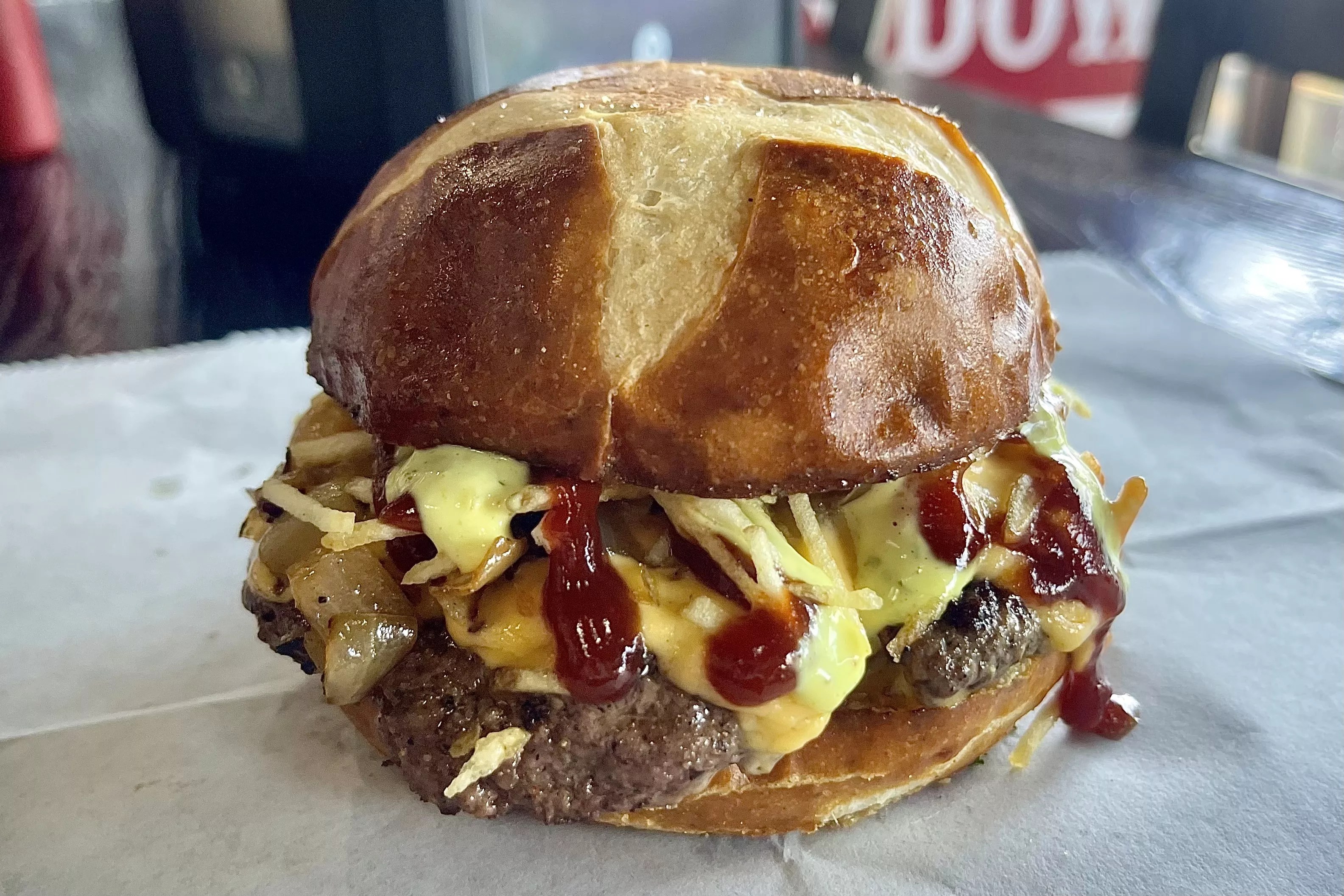 areyouhungrygrill.com Are You Hungry Grill began as a pop-up, then evolved into a food truck, and now operates a full-fledged restaurant, though they still do pop-ups around town. Their must-try item is the “Wagyu Beer Cheese Burger”: a seven-ounce Wagyu patty loaded with jalapeño beer cheese, crispy potato sticks, IPA barbecue sauce, and garlic cilantro sauce on a pretzel bun. I still can’t get behind pretzel buns, but this burger is phenomenal. On Tuesdays, they also serve a limited run of ten-ounce smoked cheeseburgers – (only 24 are made, so get there early).