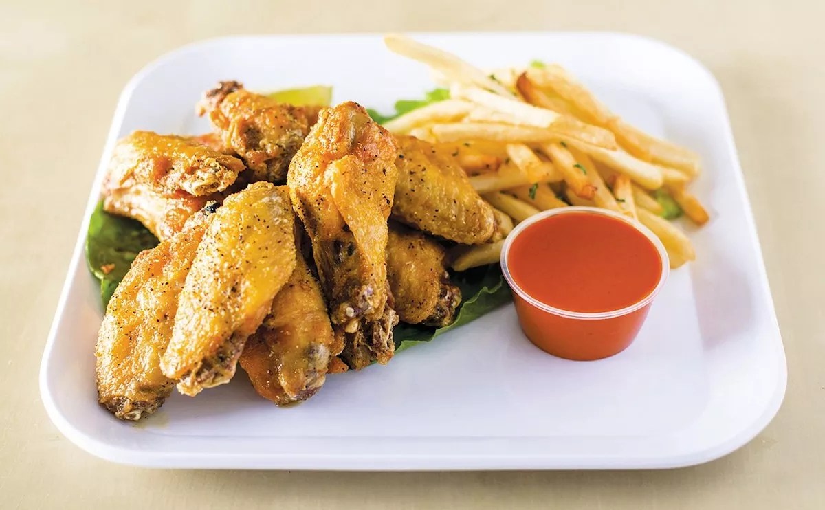 Anthony’s Coal Fired’s chicken wings are almost as famous as this local chain’s coal-oven pizza (and that says a lot). Anthony’s wings are seasoned with flavorful herbs and roasted at high heat in the oven. They arrive at the table with sweet caramelized onions and traingles of focaccia bread on the side. Their skin sports a nice char, and the flesh is moist and tender. Paired with a side of ranch to dip in, these are some of the most classic wings in SoFlo.