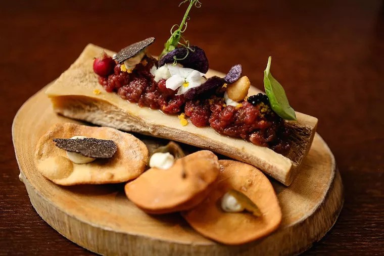 domawynwood.com DÅma will feature a special five-course menu on New Year’s Eve, with live performances by a singer and trumpet player, as well as a DJ. The New Year’s Eve meal will begin with a welcome bite of crispy Castelvetrano olive stuffed with ricotta and Osetra caviar and a welcoming glass of Champagne. Guests can then choose from dishes like steamed lobster tartare and soft egg Neapolitan, followed by options of porcini mushroom or langoustine risotto. For the main course, there will be a branzino filet or a black truffle-cured filet mignon. The sweet ending is a special hazelnut mousse cake with white chocolate, gold leaf, and citrus sorbet. The first seating is from 6 to 7:30 p.m. and costs $220 per person. The second seating is from 8:30 to 10 p.m. and costs $395 per person. Reservations can be made via OpenTable.