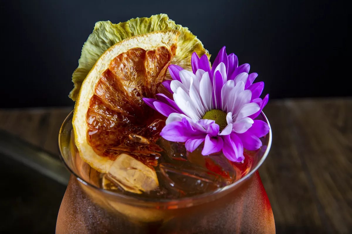 The flower-topped “1 Wish” is among the cocktail offerings at No Man’s Land.