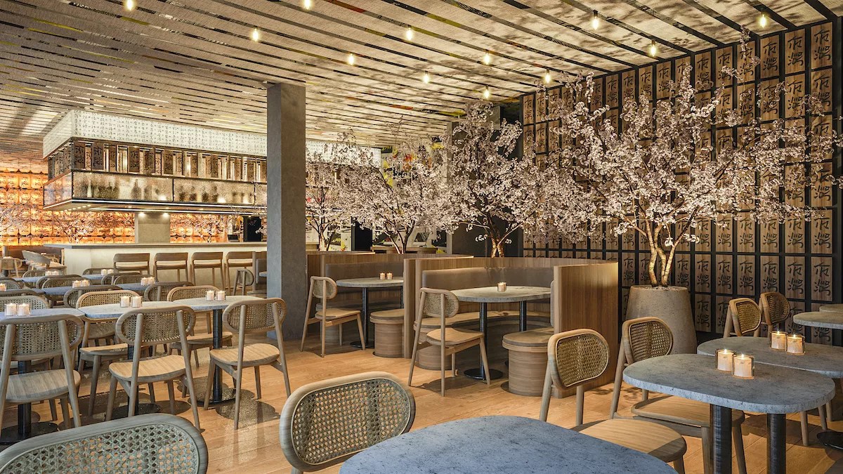 Cherry blossom trees meet contemporary design at Paperfish Sushi's new digs in Miami Beach.