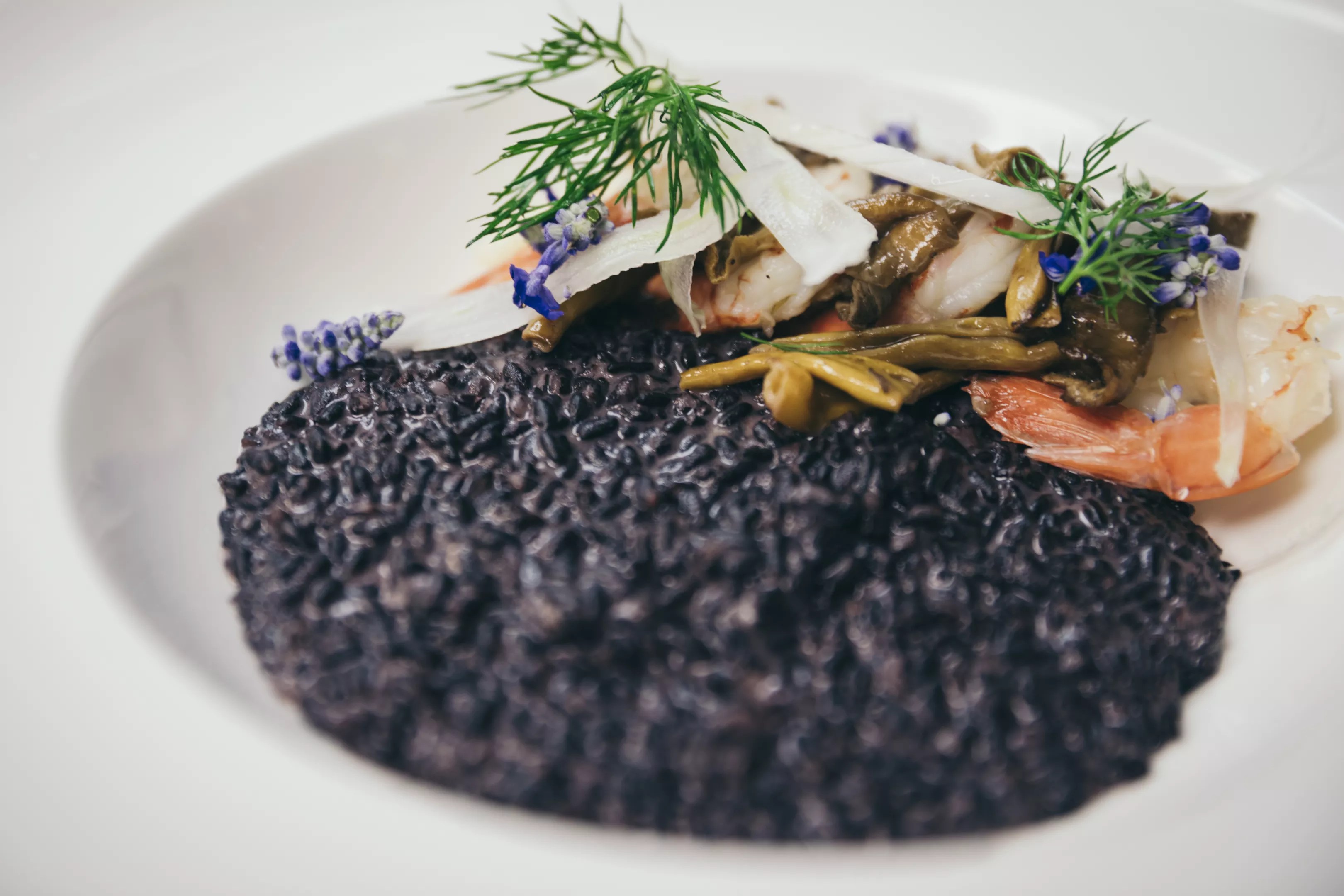 Coconut and malanga creamed black rice with pickled shrimp, brown butter, and chanterelle mushrooms will be one of the many unique dishes on the menu at Over Under