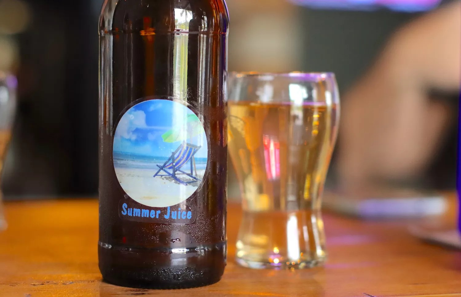 The resulting products include a Summer Juice series, which utilizes a fermentation technique McClain perfected to combine several fruits to create an easy-drinking, low-alcohol beverage. His lightly carbonated combination of strawberry, passionfruit, and orange juice rings in at just under 6 percent ABV and he says it has received love.