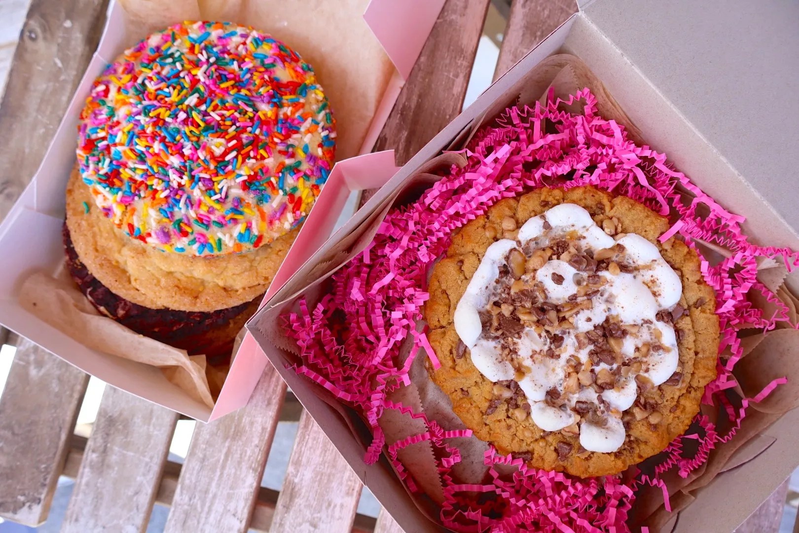 Two boxes of cookies from Cindy Lou’s Cookies, one holding a marshmallow, peanut butter, and toffee cookie that blew New Times editor Nicole Lopez-Alvar away.
