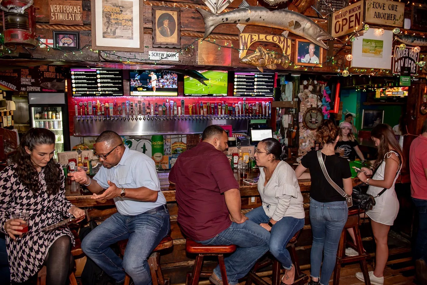 About 70 percent of the menu hasn’t changed since opening day, according to Kessler: snapper and mahi sandwiches on garlic bread, wings made from the original recipe, conch fritters that Kessler refuses to let anyone modify (“If you can’t do it, this isn’t the place for you to work,” he tells chefs who want to improvise), and potato skins he insisted on adding because he loves them. The 52 rotating taps feature everything from local craft breweries to hard-to-find imports, though you can still get a “Bud Heavy,” if that’s your thing.