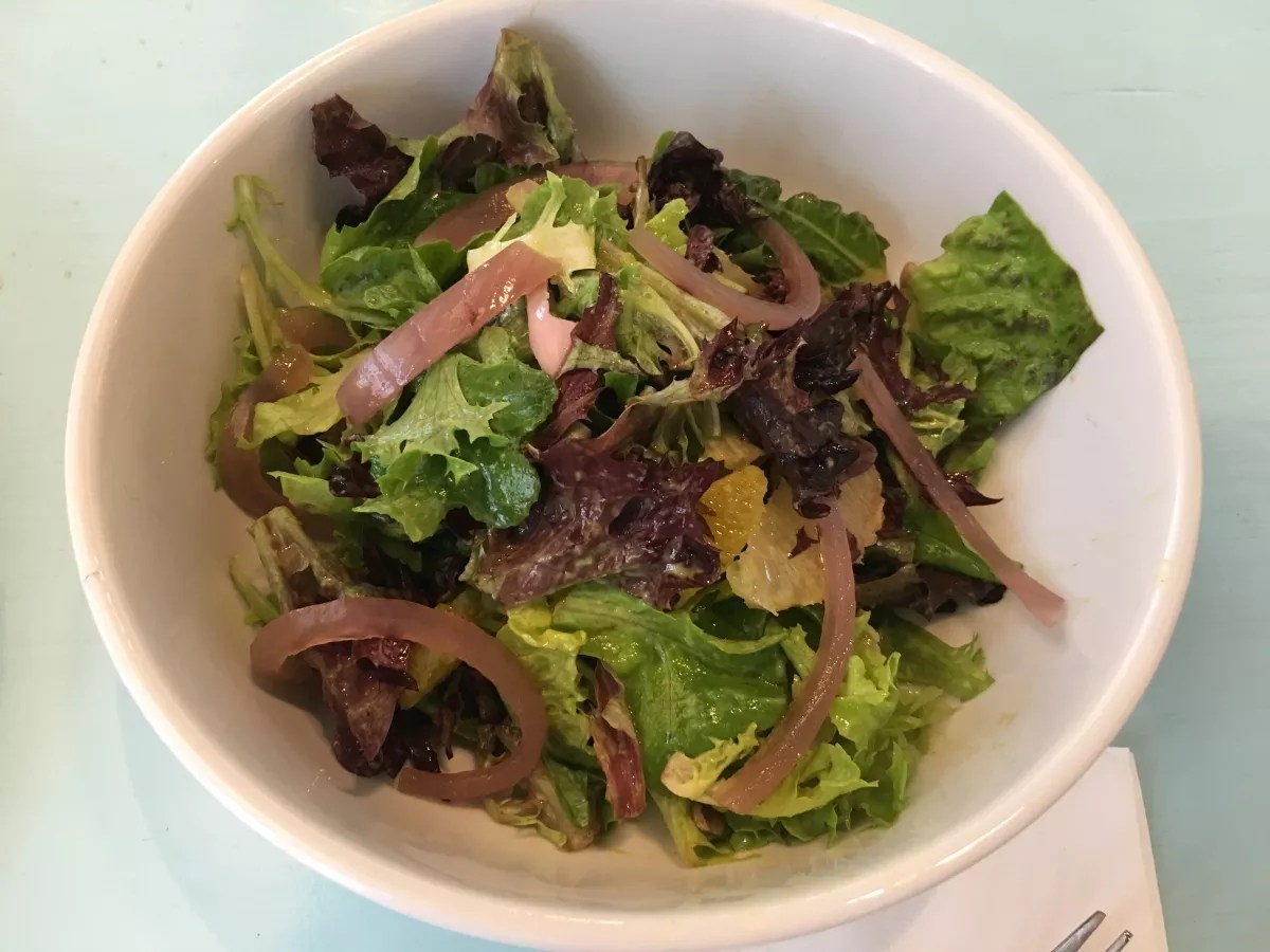 OTL’s manchego and pear sandwich is served with plantain chips, and the baby greens and citrus salad comes topped with pickled onions. Both are light yet full of flavor, and the attention to detail is evident. It’s a lovely place to have lunch or catch up on some work while enjoying some tea and a cookie.