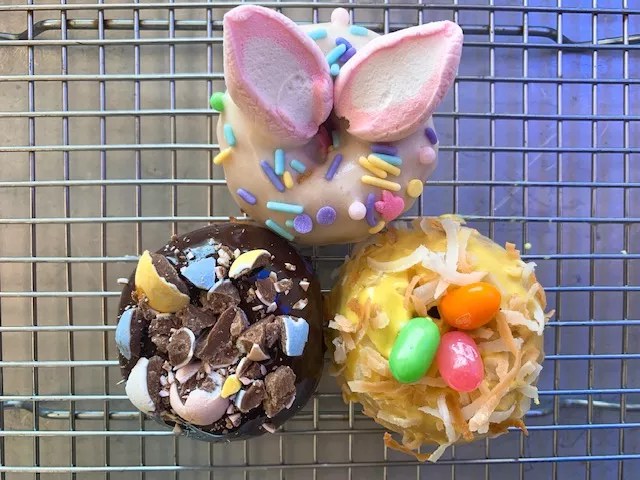 Mini doughnuts dressed with marshmallow bunny ears, and bird’s-nest arrangements made of toasted coconut and jelly beans can be found on Pretty Sweet’s Easter menu ($1.25 each). The shop will be closed Easter Sunday, so plan accordingly.