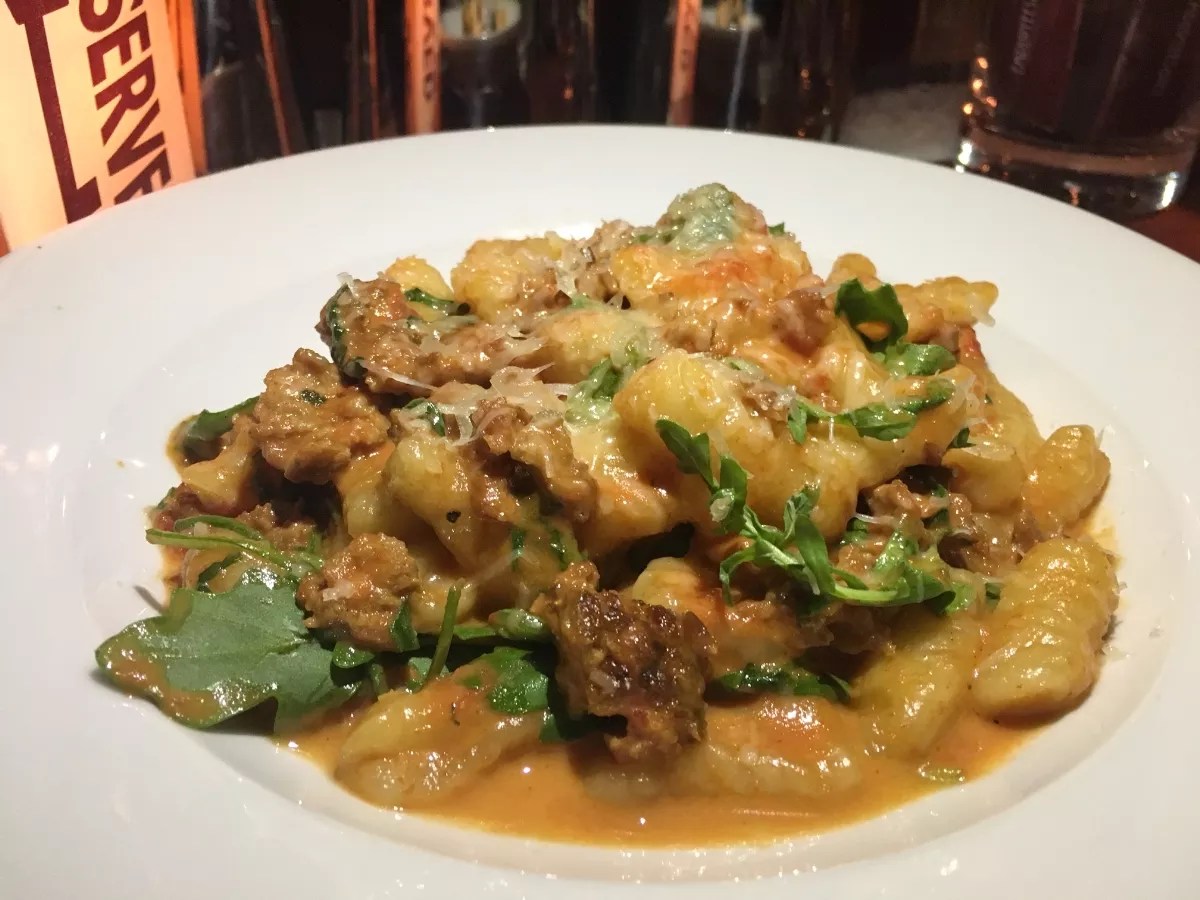 Cavatelli with spicy pork sausage, tomato, and arugula ($19) is one of two pastas offered. A tagliatelle with zucchini, lemon, and Parmesan is also available ($17). For larger appetites, there’s a seared bone-in rib eye with horseradish potato gratin ($68), as well as whole roasted trout ($31) and roasted half chicken ($31).