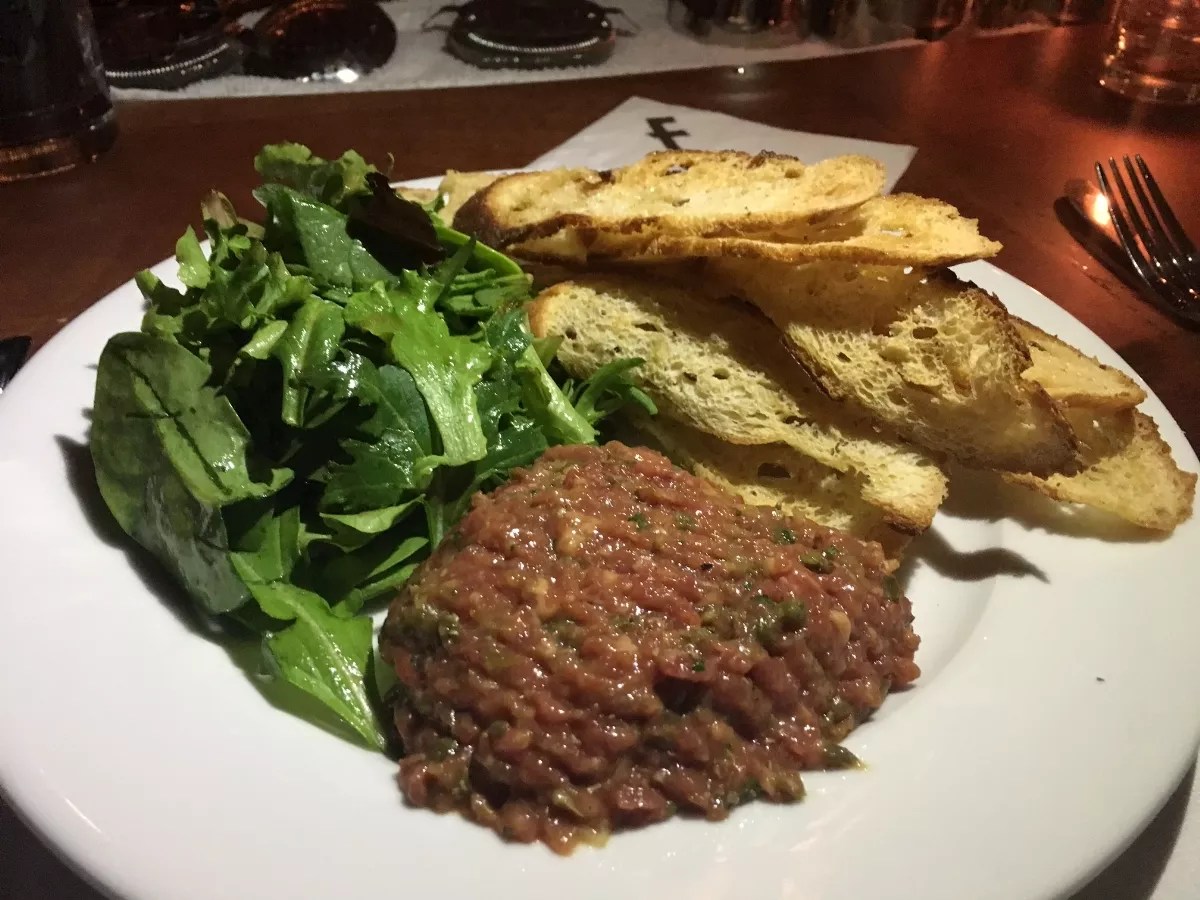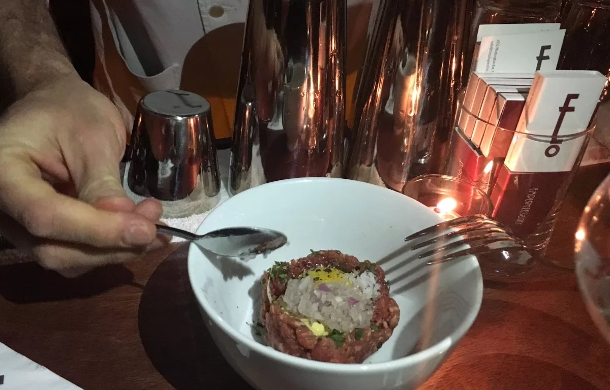 The house specialty is the hand-cut steak tartare ($18), prepared tableside. Your bartender will create a bespoke dish to your taste. Photo by Laine Doss