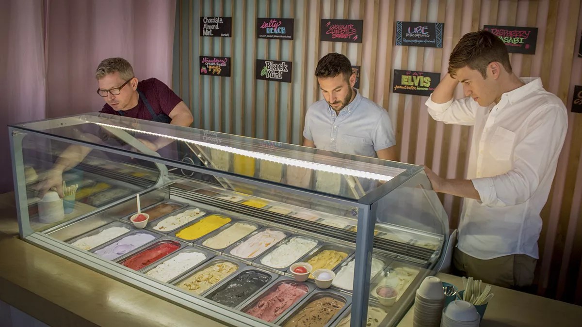 Levine, a 26-year-old with light-brown side-swept hair, was raised in South Miami and met McCarthy in 2016 shortly after the chef moved to town to head Zuma’s pastry program. (He spent 11 years as pastry chef at Morimoto in Philadelphia.) A year later, the two met Ryan Elias, a snazzy 30-year-old with a rough beard and perfectly gelled hair, through a mutual friend. The trio decided to partner. McCarthy would oversee ice-cream experimentation and production, Levine would handle business, and Elias would head marketing and outreach.
