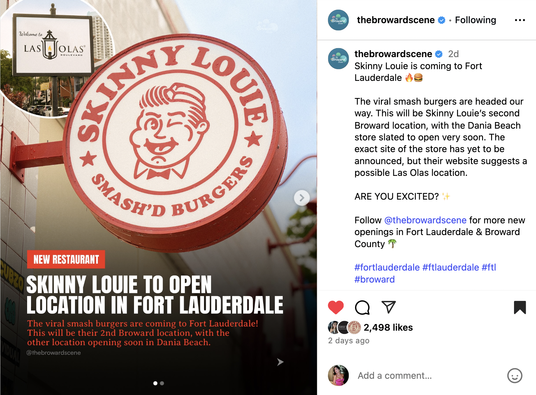 People in Fort Lauderdale are extremely excited about Skinny Louie’s Fort Lauderdale