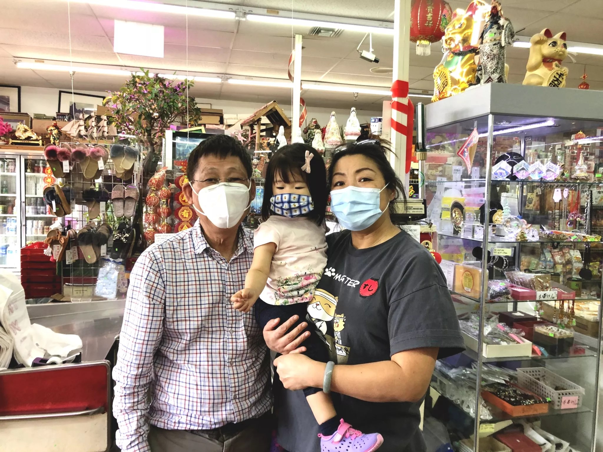 Alejandro and Isa Cheong with one of their grandchildren at Lucky Oriental Mart in Miami
