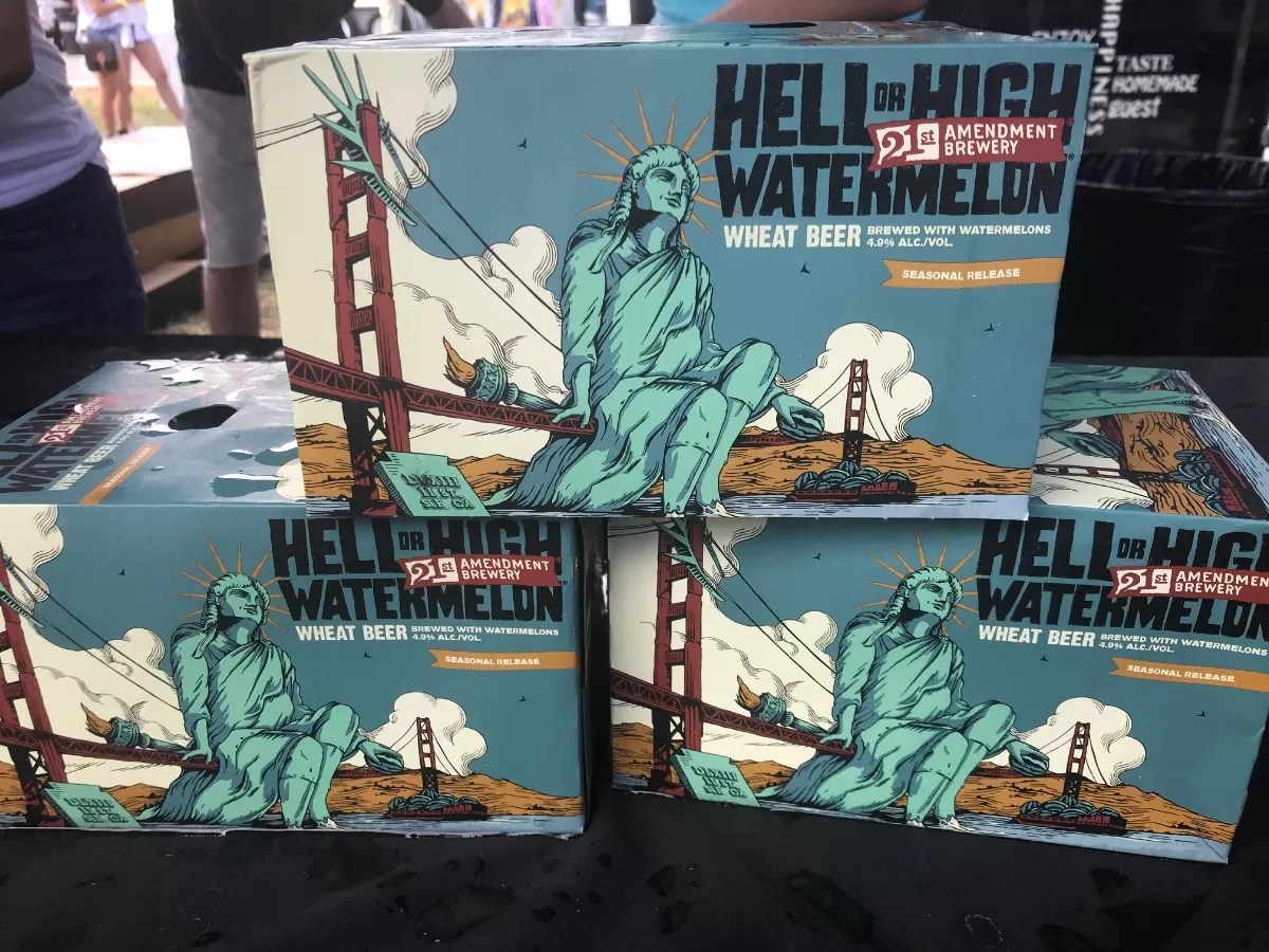 Watermelon. At least three breweries poured beers made with summer’s official fruit. San Francisco-based 21st Amendment Brewery’s Hell or High Watermelon is a true porch-pounder. Remember watermelon Jolly Ranchers? This is the adult version in a can.