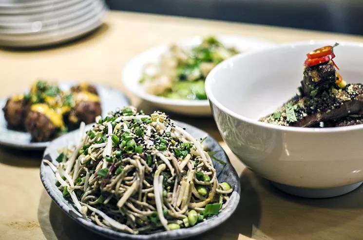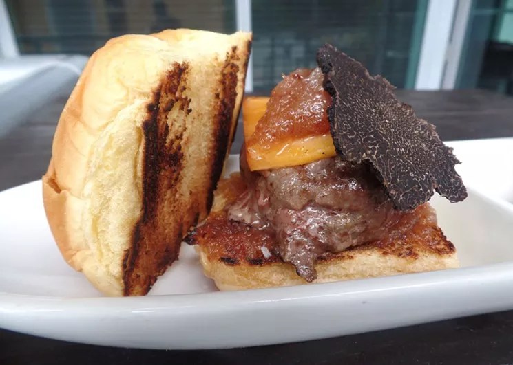 Next door to Bodega Taqueria y Tequilla sits Ricky’s (1222 16th St., Miami Beach), the latest concept from Menin Hospitality. The high-ceilinged venue is part old-school entertainment complex, part bar and eatery. Arcade games such as Terminator, Dance Dance Revolution, and air hockey greet you as you enter the dimly lit industrial space. Toward the back, across from the sprawling bar, there’s a big stage where the band Jean Pjam is playing reggae as part of Reggae Fridays. Massive couches face the stage for prime viewing, but there’s plenty of room for dancing too.