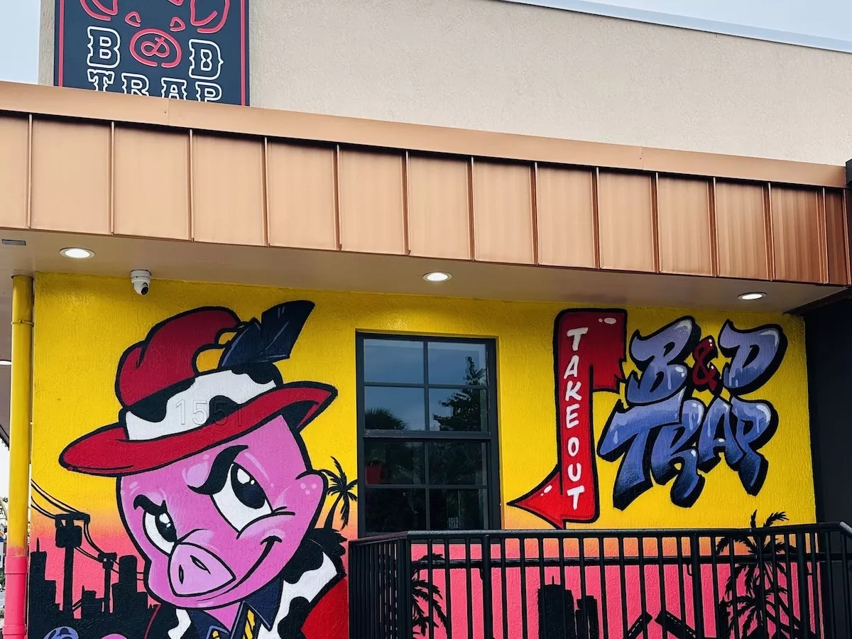Tucked off Sistrunk Boulevard – the heart and soul of the city that’s rooted in Black history – consider B&D Trap off the beaten path. It’s impossible to miss, with an exterior draped in yellow and red graffiti art made complete with a red fedora-wearing pig as its artsy mascot.