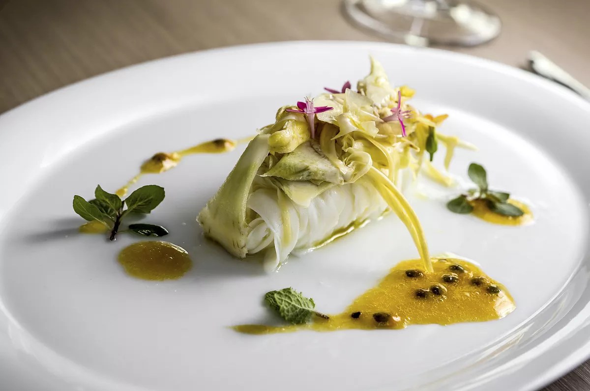 Antonio Mellino grew up just outside Naples and acquired his knowledge of seafood from his father, who was in the business. Despite having plenty of local fish to choose from in Miami, the toque prefers to source it from the Mediterranean because he finds the product saltier. For the calamari starter, the kitchen cooks the squid sous vide and flash-freezes it. It’s then thinly sliced to resemble strands of tagliatelle pasta and seasoned with lemon, olive oil, herbs, and wisps of artichoke. Tagliolini crab Photo by CandaceWest.com