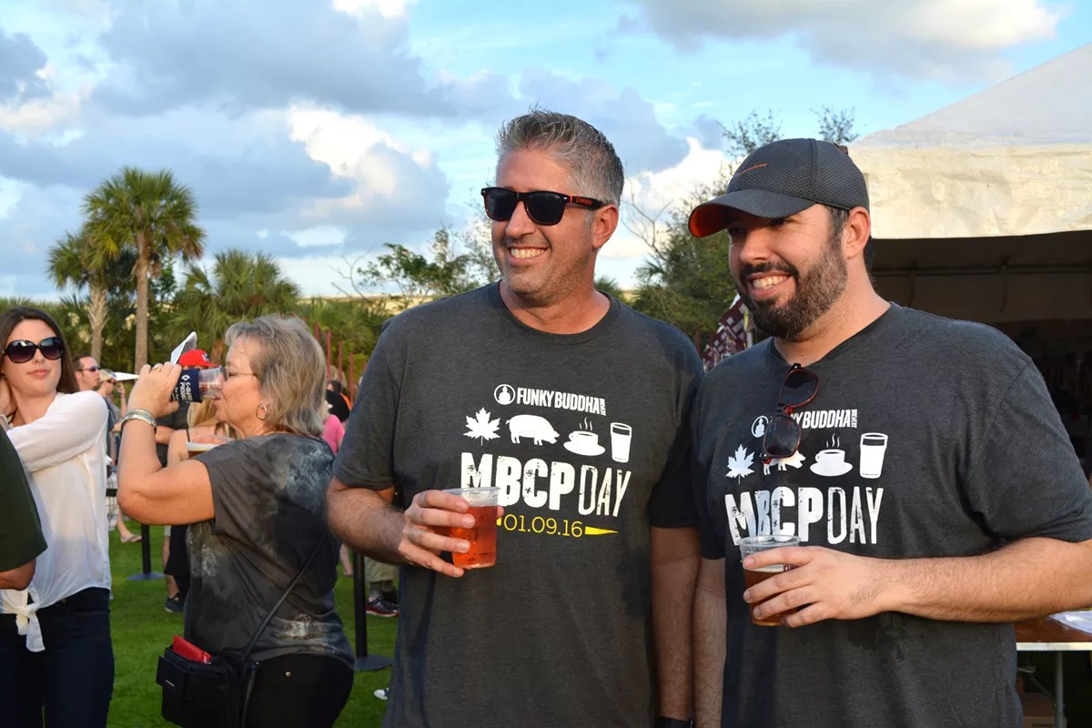 Funky Buddha founders KC (left) and Ryan Sentz celebrate the brewery’s Maple Bacon Coffee Porter Day in 2016.
