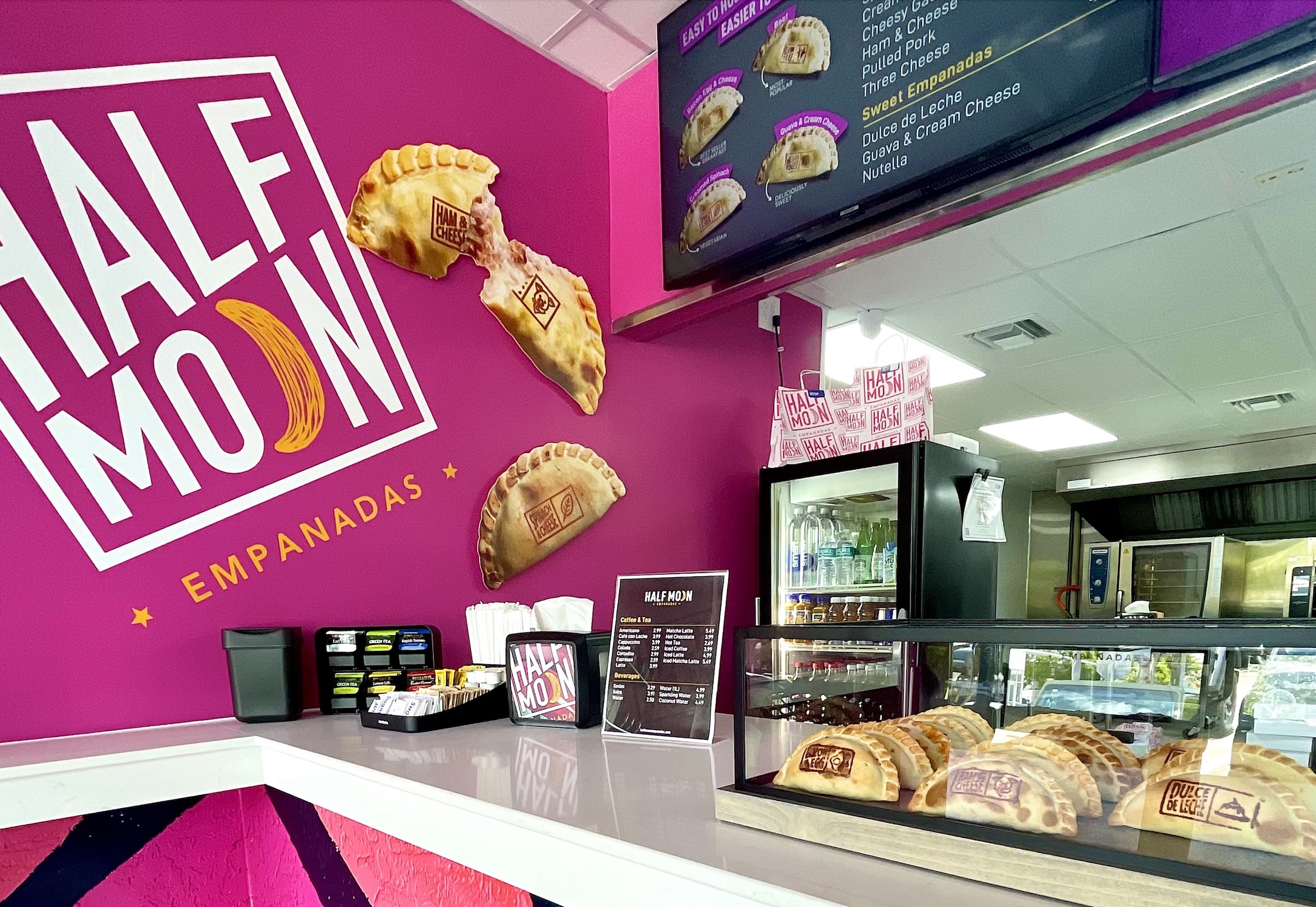 The South Miami shop keeps the grab-and-go energy that Half Moon is known for, but leans into the neighborhood vibe. The design is clean and modern, and according to the brand, the service will be fast, and the empanadas will come out hot and flaky.