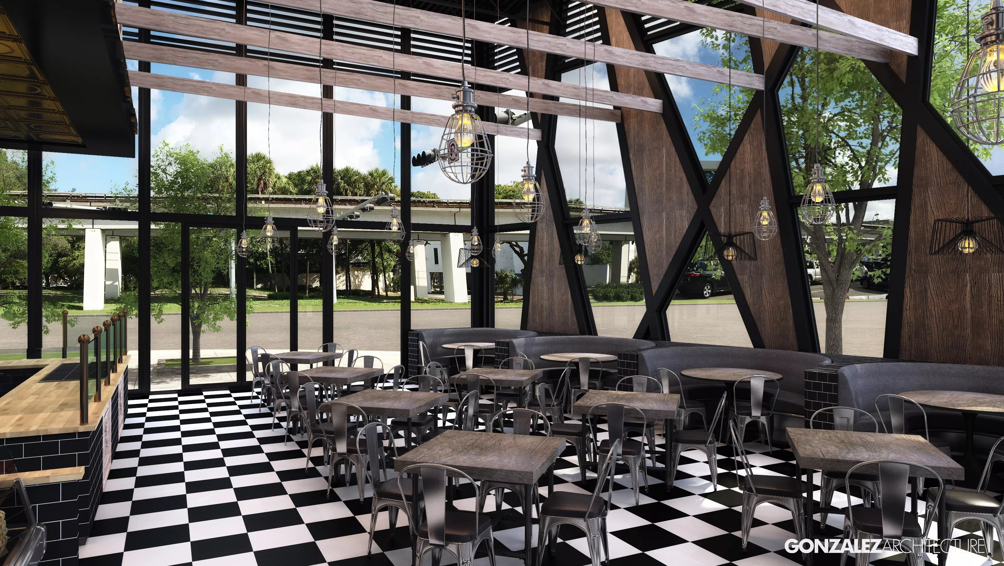 Decor will also be similar, with white-tiled walls, gold accents, and black-and-white checked tile flooring.