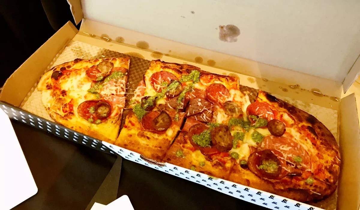 Other new additions to the Hard Rock Stadium food roster include Menchie’s Yogurt (sections 139 and 350), offering soft-serve ice cream cones and cups, along with a variety of toppings; and &Pizza (sections 142 and 345), a D.C.-based pizza company that bakes fresh, oblong-shaped, thin-crust pizzas. This is the first South Florida location for &Pizza, which has locations throughout the Mid-Atlantic and Northeast states. Fuku’s new sandwich. Laine Doss