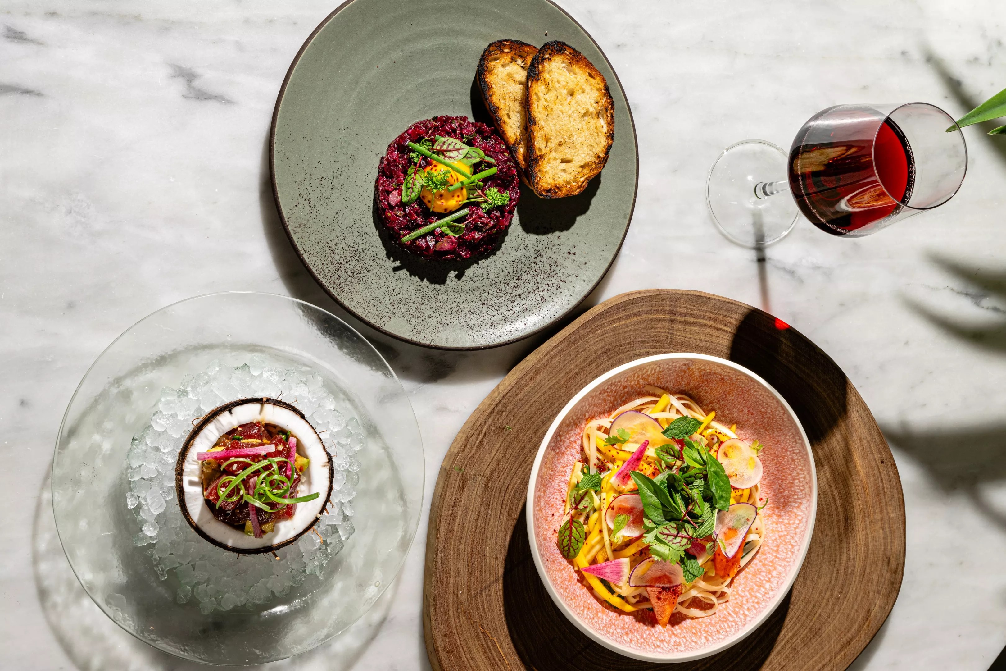 Clean eating doesn’t have to mean sacrificing flavor. Wyn Wyn, now open at Arlo Wynwood, proves it. The new spot from Hawaiian-born chef David Robbins brings a fresh take to the neighborhood, offering dishes that balance superfoods with locally sourced ingredients. Think bold combinations like beet tartare with mango “yolk” and Korean fried chicken marinated in fermented garlic honey.