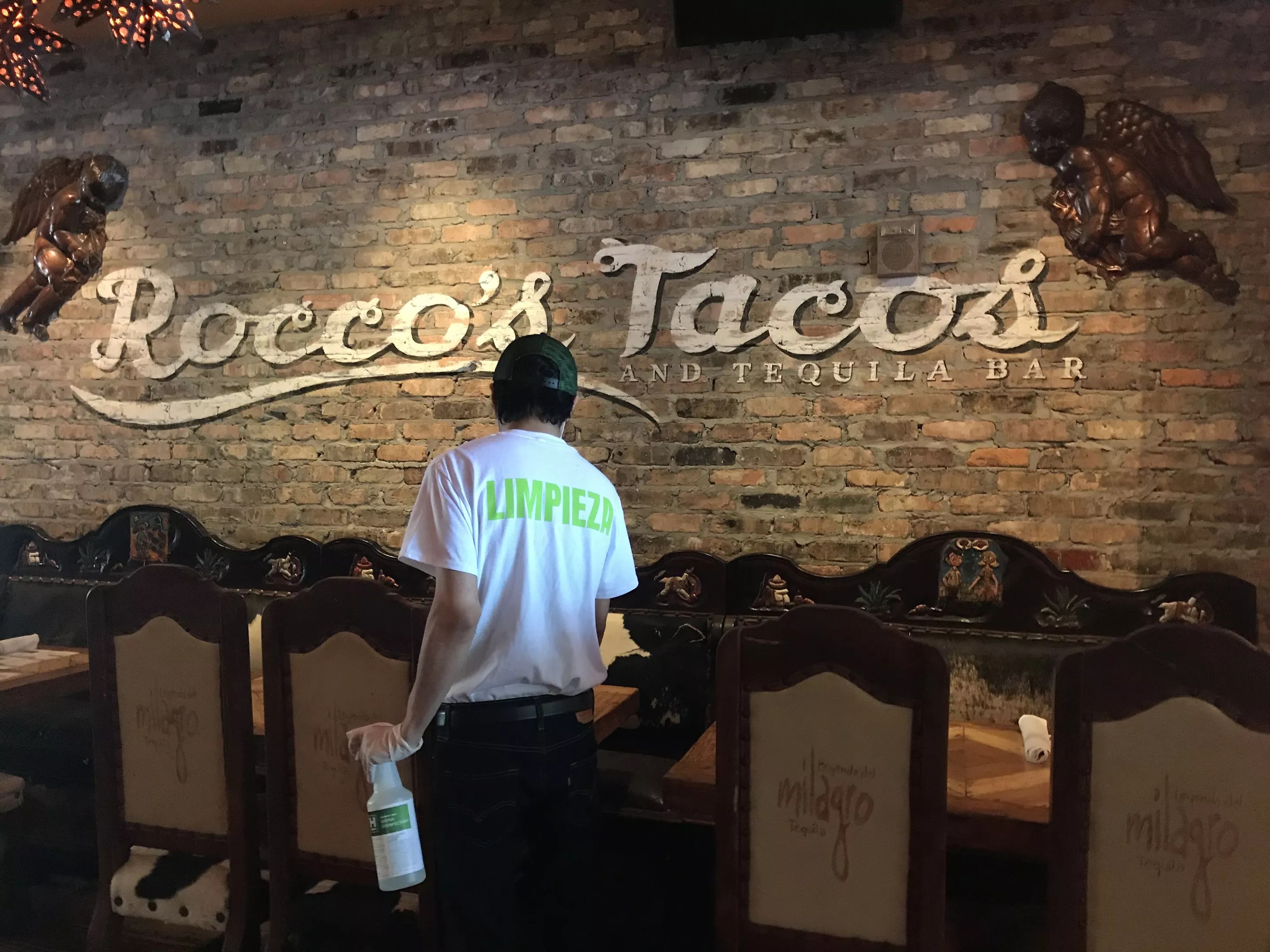 Cleaning patrol at Rocco’s Tacos.