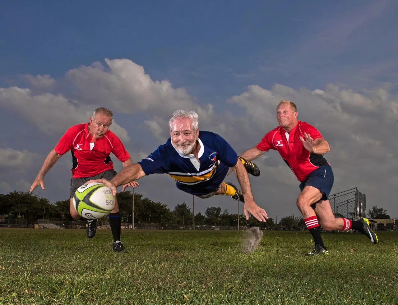 Greenberg, a college rugby player, still plays the high-contact sport in his golden years.