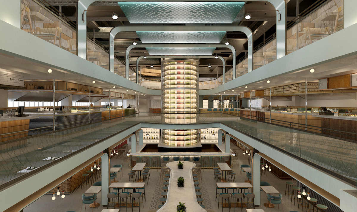 The seven-level, multiuse establishment will include a rooftop restaurant helmed by a yet-to-be-named celebrity chef, a basement speakeasy-themed bar, and three floors dedicated to more than 20 food and beverage concepts.