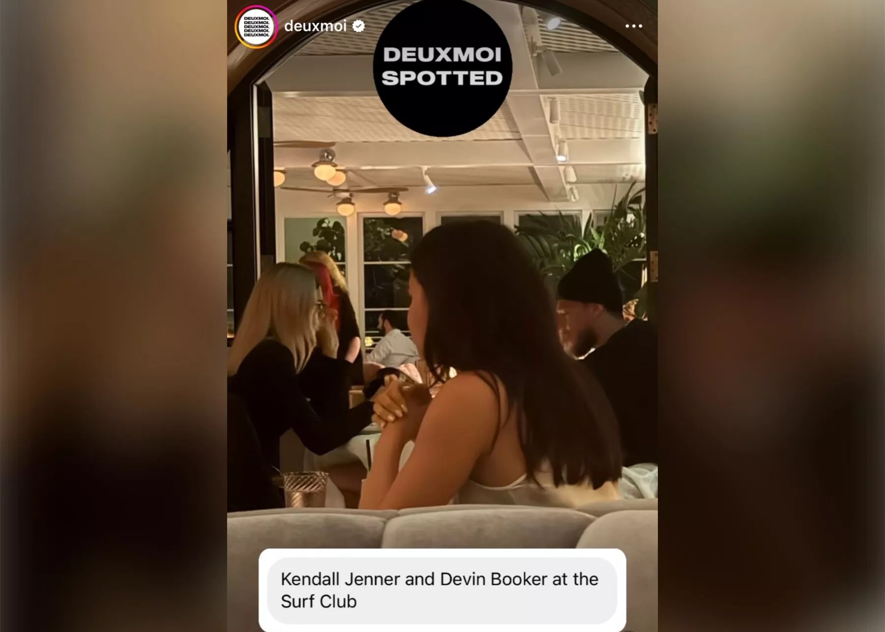 Gossip website Deuxmoi obtained a photograph of Kendall Jenner and Devin Booker having dinner at the Surf Club Restaurant in Surfside.