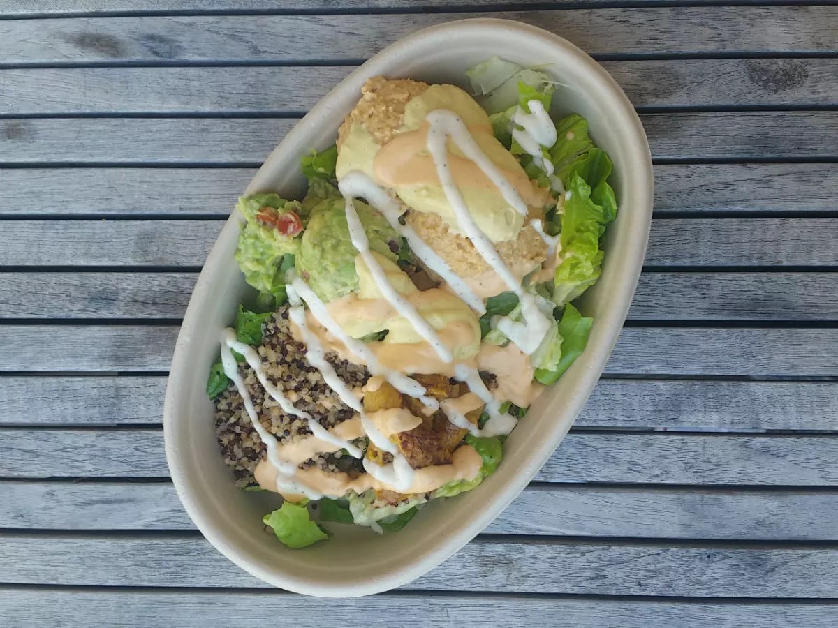 1. Dirt. The umami spinach bowl ($11) is pure veggie power. It includes cancer-fighting mushrooms and protein-packed hummus for fewer carbohydrates than a banana. 1834 Bay Rd., Miami Beach; 786-453-2488; dirteatclean.com. The JKO salad at Holi Vegan Kitchen. Holi Vegan Kitchen