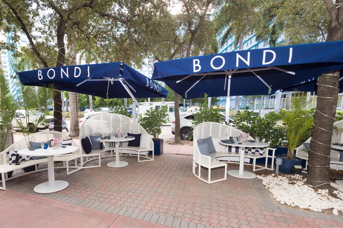 The patio area at Bondi Sushi’s Miami Beach location