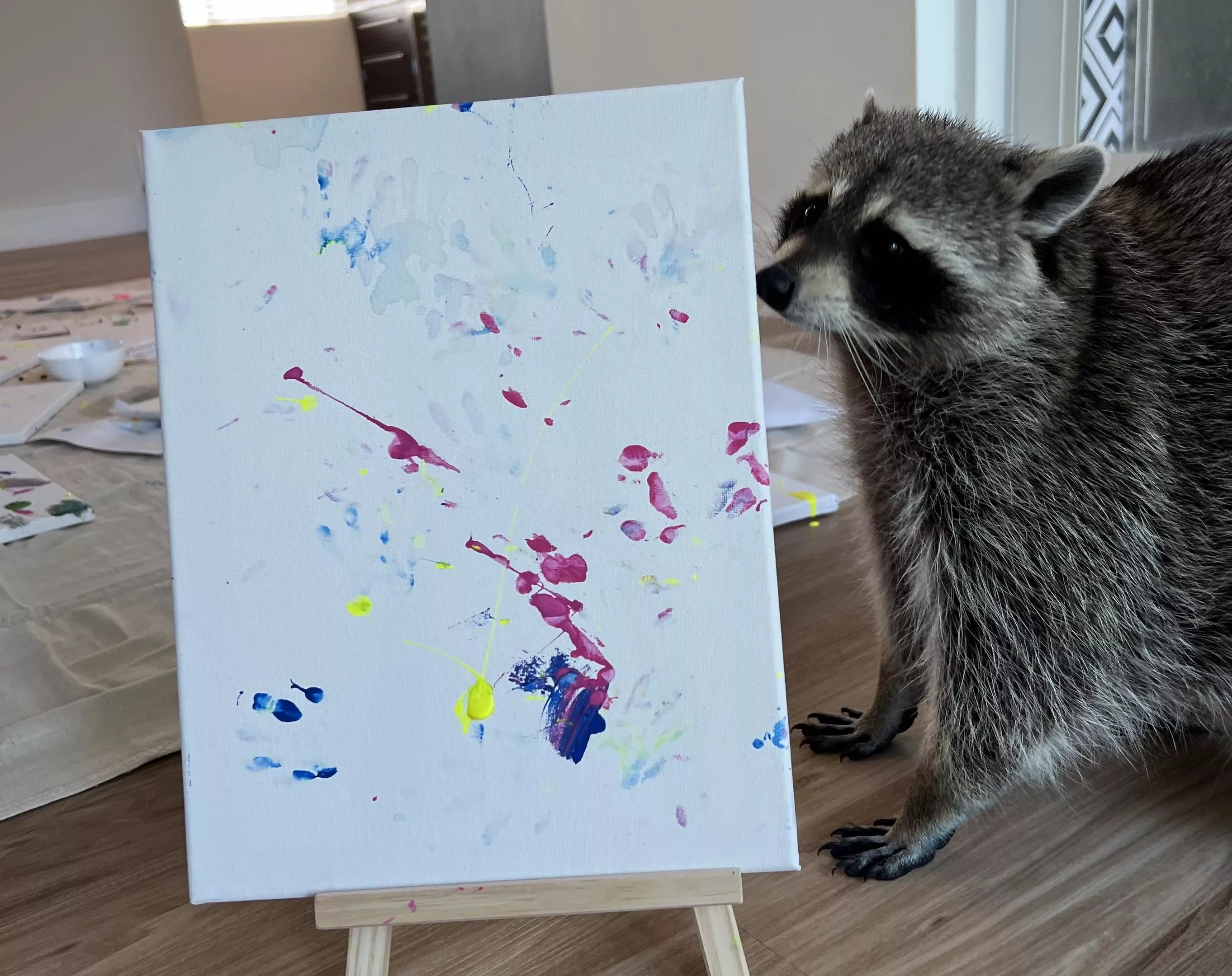 To Arslan, winning the contest is important because Louie represents the kind nature of raccoons that is rarely seen by the public eye. Through her Instagram account, she can educate her followers to change their perception of raccoons. (They can even paint! Well, sort of) Arslan taught Louie how to step into non-toxic paint, which he then hops over onto a blank canvas and goes to work “painting.”