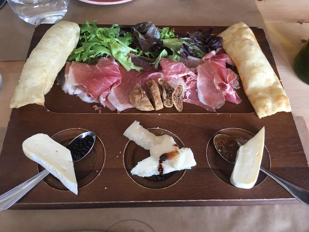 The Emilia-Romagna region is known for its pork, prosciutto, Parmigiano-Reggiano, and balsamic vinegar. The city of Parma is the birthplace of Parmigiano cheese and prosciutto, and at Via Emilia 9 you can get a charcuterie and cheese plate featuring the famous cheese and meat ($18.90). Valentina Imbrenda says Parmigiano is like salt for the people of Emilia-Romagna because there’s virtually no dish that doesn’t include the ingredient. The cheese is paired with balsamic vinegar, which originated in Modena, another city in the region. They’ve also included a homemade fig chutney alongside a Robiola cheese. The bread featured on this board is also homemade and has a lovely crunch to it. It’s a classic Italian starter, and chef Wendy and his wife know how to do it justice.