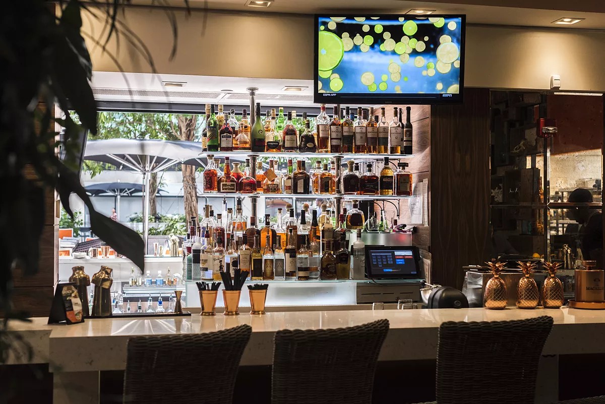 Wednesday evening, chefs Michael Beltran of Ariete and Manuel Echevarria of the Surf Club will host a collaboration dinner at Beltran’s Coconut Grove restaurant Ariete. Expect a welcome cocktail, followed by a six-course tasting menu with wine pairings. Menu highlights are foie and rye tart; marinated cobia with ginger panna cotta and almond tuile; the French Laundry’s pumpkin purée with pumpkinseed risotto, pepitas, and orange gremolata; duck Wellington; and passionfruit pavlova with Bee Heaven passionfruit sherbet and toasted meringue. 6 pm. Wednesday, November 13, at Ariete, 3540 Main Hwy,, Coconut Grove; 305-640-5862; arietemiami.com. Tickets cost $155. Call for reservations. The bar at Lobster Bar Sea Grille. Courtesy of Lobster Bar Sea Grille