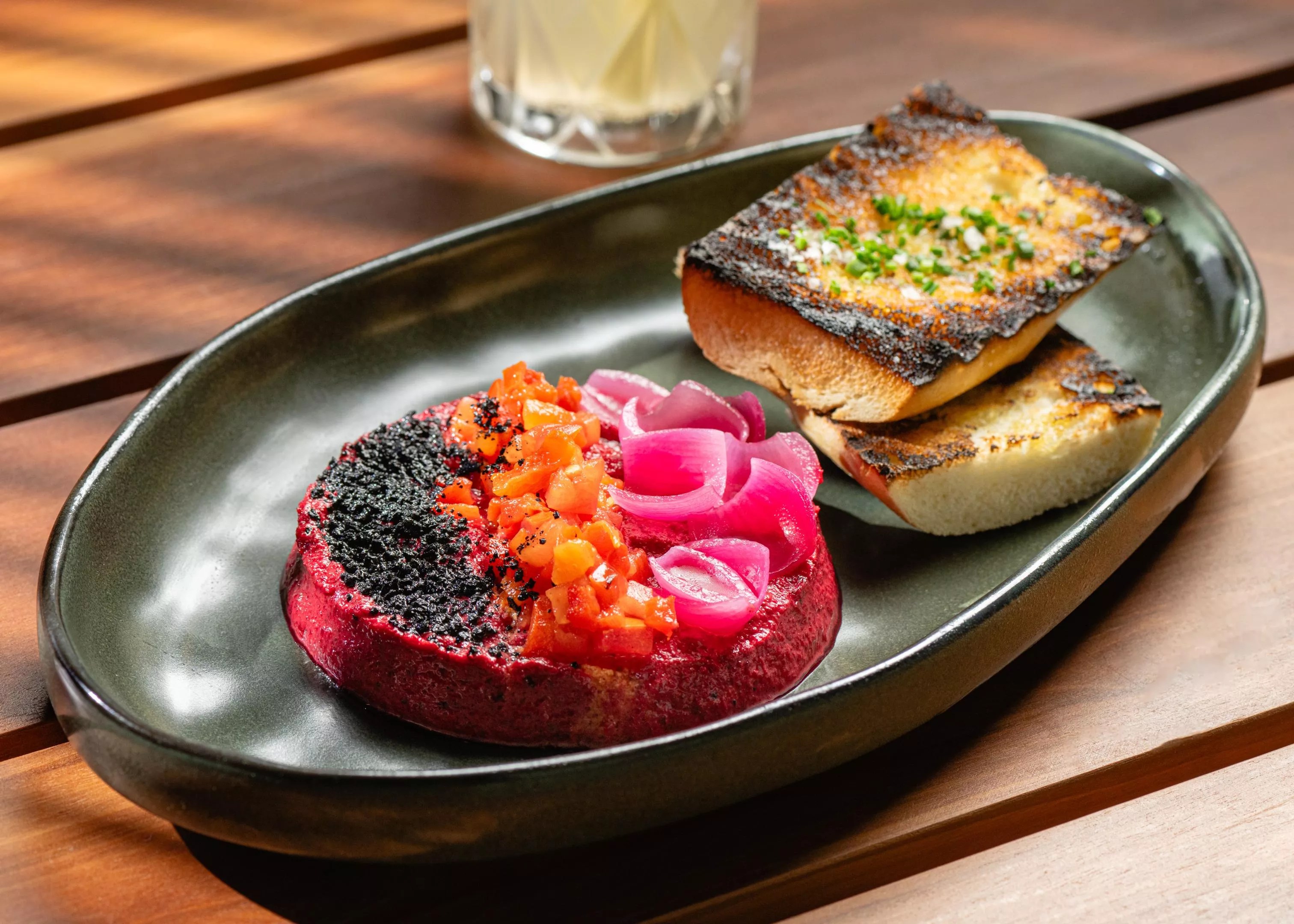 Highlights from the menu include beef short ribs with demi-glace and three chilies, tiger shrimp with garlic, aguachile arrachera, a crab tostada, veal milanesa, and an array of raw bar and grill items, including Takamori A5 Wagyu and OMI Wagyu.