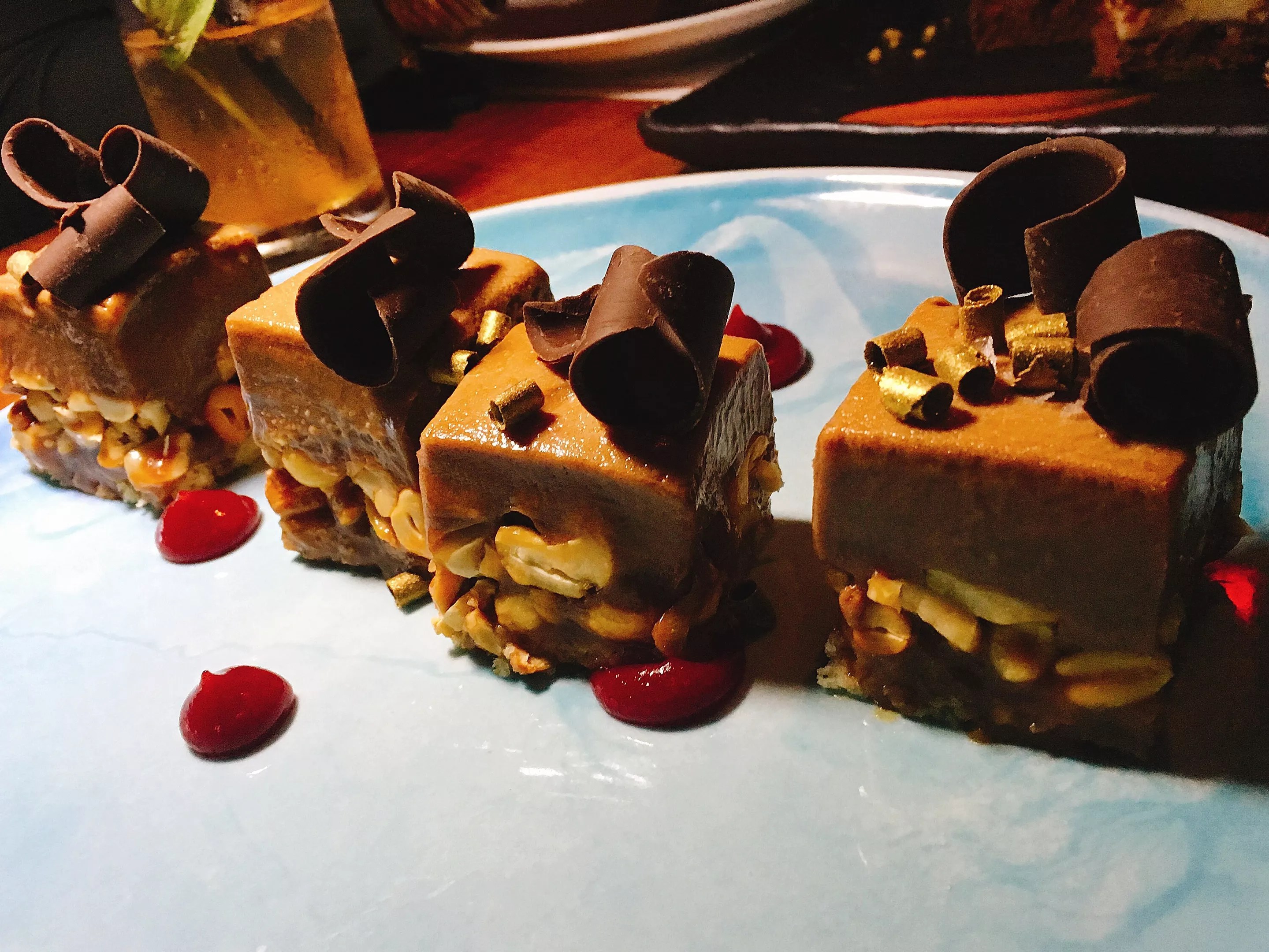 For dessert, guests can choose from Komodo’s baked Alaska with key lime yuzu ice cream, a duo of mochi in passionfruit and matcha green tea chocolate chip flavors, or a chocolate-peanut nutty bar made with tahini peanut cashew caramel, almond sponge, salted caramel mousse, Maldon salt, and raspberry.