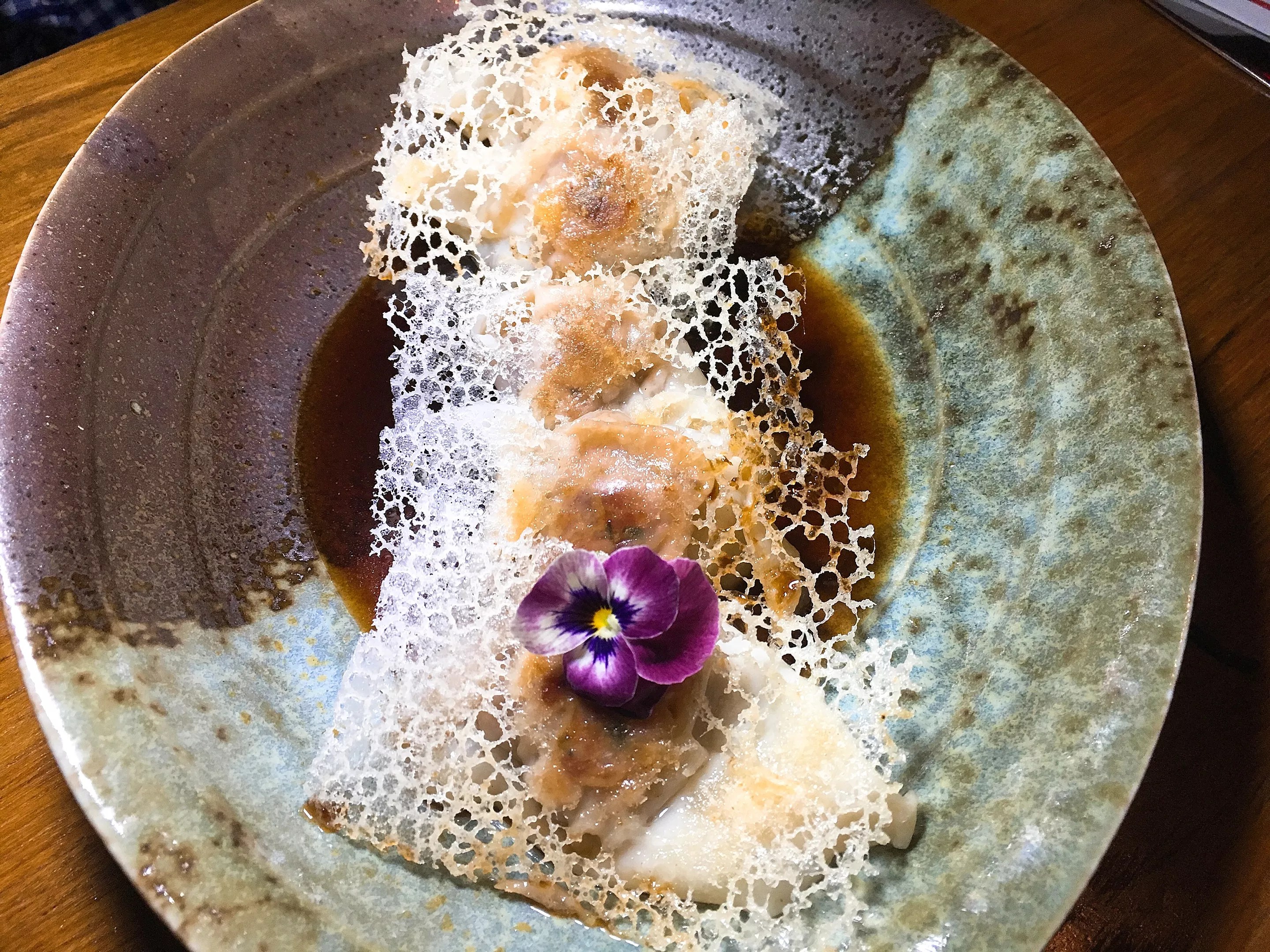 Wagyu beef dumplings, also served in citrus ponzu and fried to a light crisp, are the perfect complement to the shishito peppers.