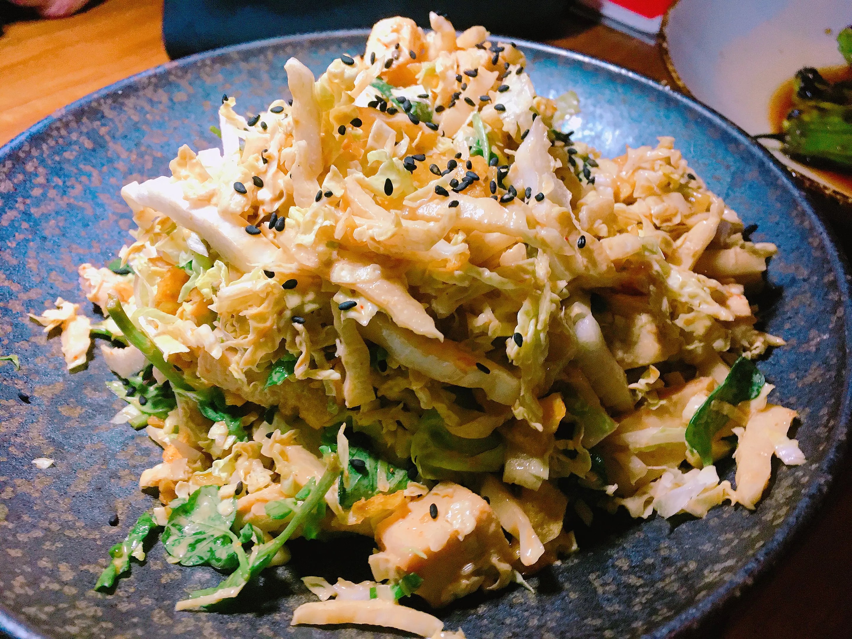 The Komodo chicken salad, made with shredded napa cabbage, sesame, and crisp wontons, provides a refreshing contrast to some of the heavier starters, making it a crowd pleaser.