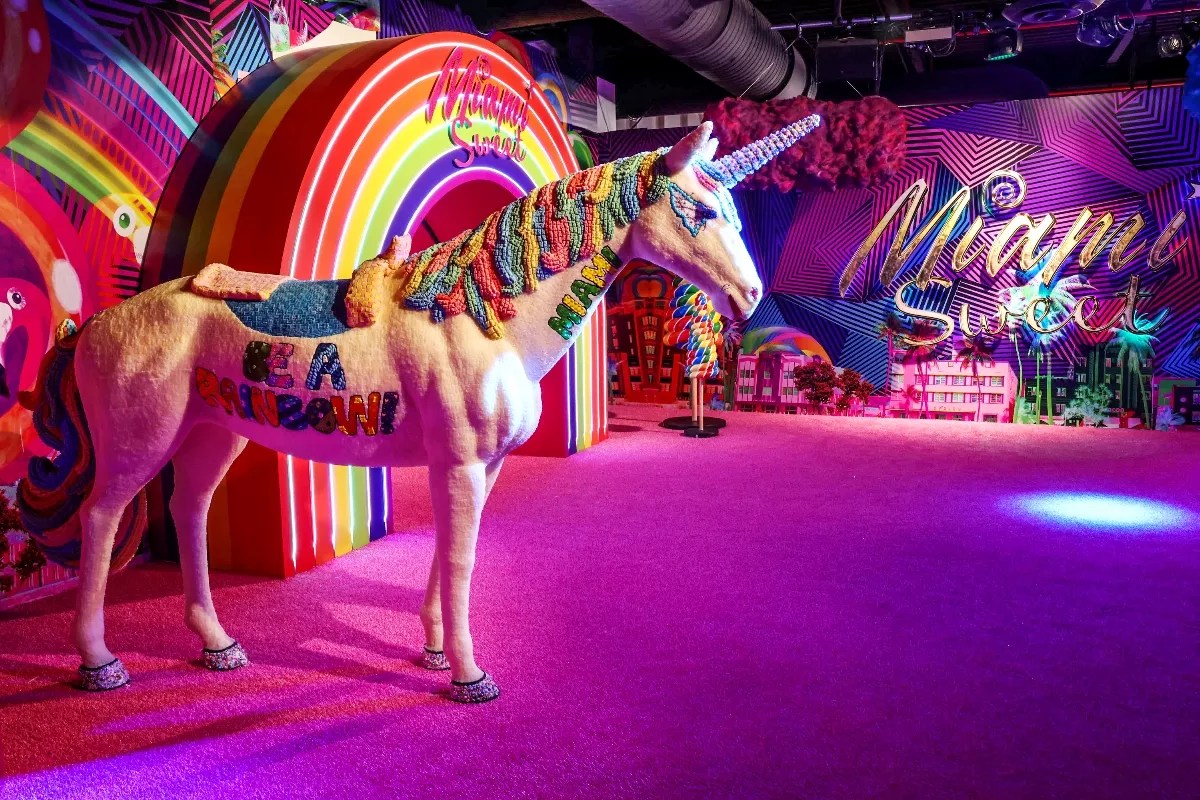 The cofounder of Candy Kingdom brought Candytopia, a colorful pop-up experience, to Aventura Mall in 2019. Now she returns with Miami Sweet, what Sorkin calls “a love letter to Miami.” In all, there are 12 different rooms, each with its own theme – from a Lisa Frank unicorn fantasy to a beach scene to an art gallery with masterworks re-created in sugary form.