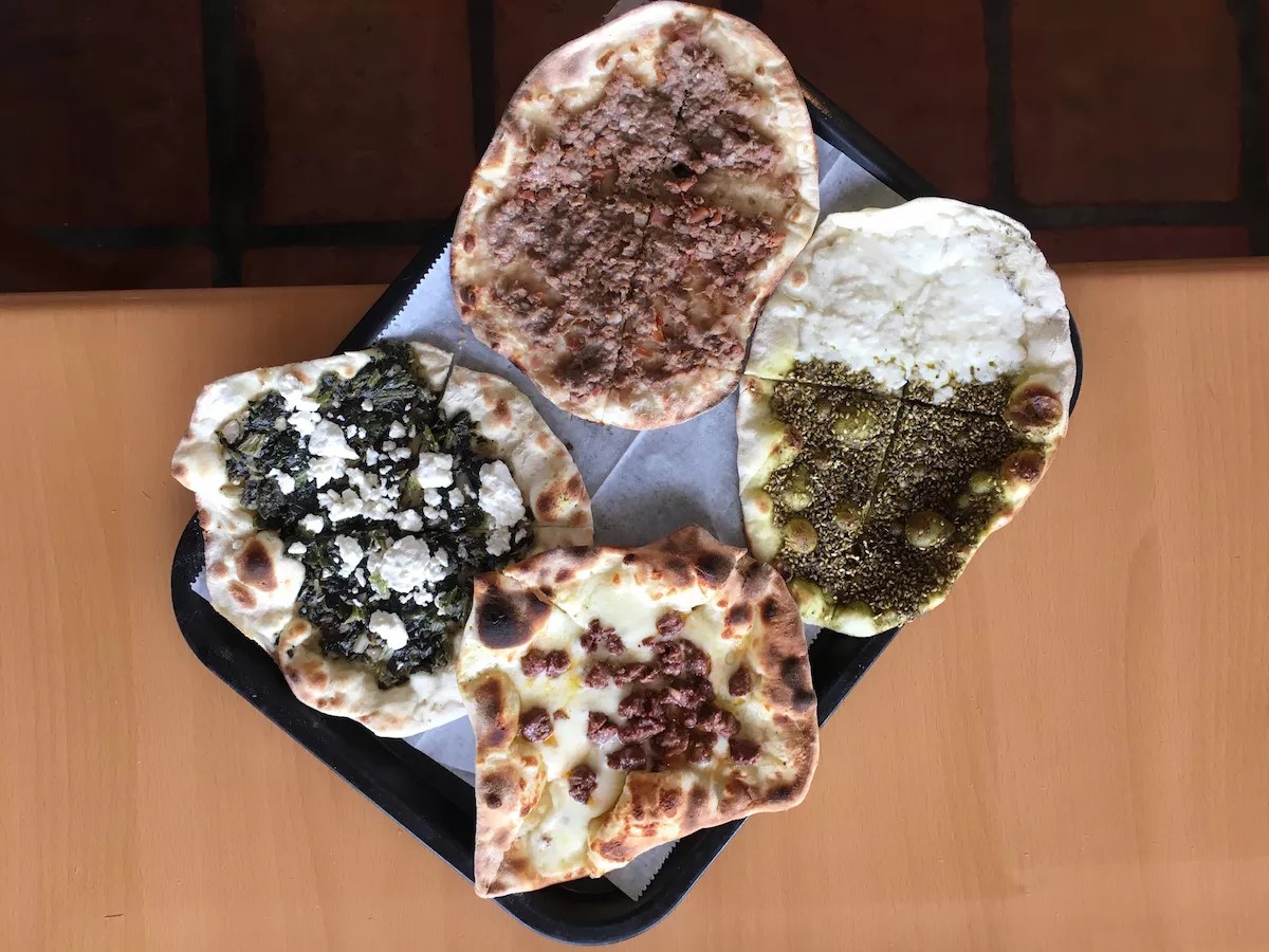 7. Vol au vent de tuna at Gilbert’s Bakery. Furrow your brow if you like, but the best Cuban pastries are filled with a slightly salty tuna salad. Known as either a menesier de tuna ($1.25), with a thick, crumbly, glazed crust, or a vol au vent de tuna (90 cents), with a fluffy, buttery, sugar-slicked puff pastry, they can be found at Gilbert’s Bakery, where owner Gilberto Arriaza continues his family’s traditions decades after their Havana bakery was seized by the Castro regime. Though this strange-sounding snack is generally made to be enjoyed during Lent, Arriaza says they’re available throughout the year by special order. 3340 Coral Way, Miami; 305-442-2427; gilbertsbakery.com. Noor’s Lebanese flatbread sandwiches. Photo by Zachary Fagenson