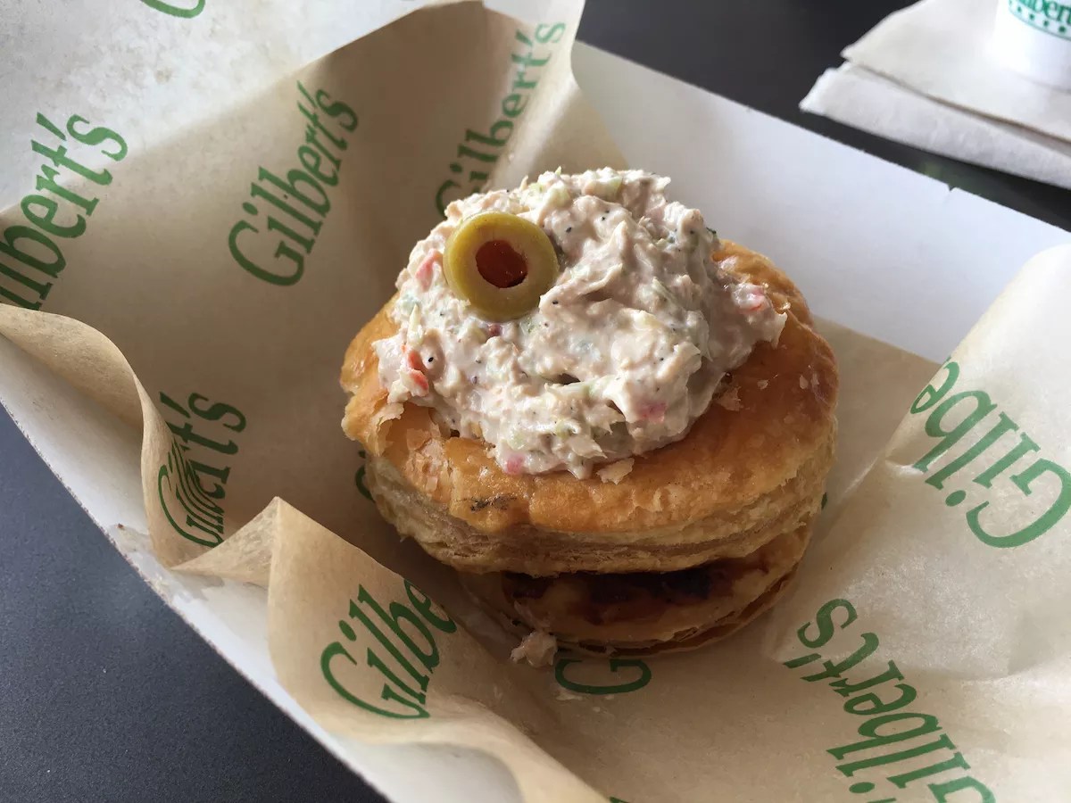 6. Corned beef sandwich at Zak the Baker Deli. Sure, there were avocado toasts, but when Zak Stern turned his Wynwood bakery into a Jewish deli, Miami soon learned that brisket brined for five days in a salty bath fortified with coriander, allspice, cinnamon, and cloves and then steamed until tender was actually the best accompaniment for the bearded baker’s sourdough. Add onto your corned beef sandwich ($16) a thick slick of spicy mustard and enjoy with a pickle, and you might never think about avocado toast again. 405 NW 26th St., Vol au vent de tuna at Gilbert’s. Photo by Zachary Fagenson