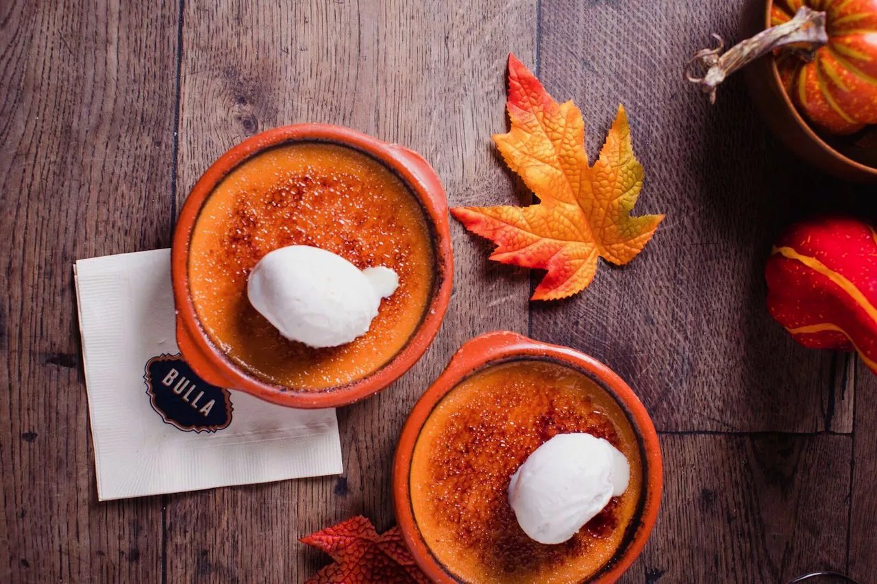 1. Bulla Gastrobar. This trendy Spanish eatery is giving a fall twist to a dessert favorite: A special pumpkin creme brûlée ($8) is paired with a scoop of vanilla ice cream. 2500 Ponce de Leon Blvd., Coral Gables; 305-441-0107; bullagastrobar.com.