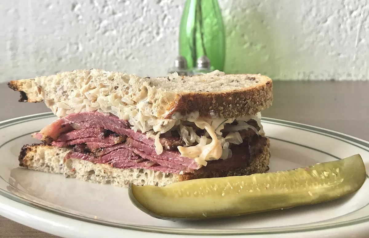 Upland. Upland breaks many unspoken South Beach traditions. The Manhattan import, created by restaurateur Stephen Starr and chef Justin Smillie, basks in a warm glow on a quiet corner of Miami Beach’s South of Fifth neighborhood. Inviting comfort food is a nod to rustic Italian cuisine, and many of the dishes are cooked in an oversize wood-burning oven or an adjoining coal one, which adds a hint of smoke without a charred taste. The pistachio pizza includes a savory blend of mozzarella and fontina topped with a crunchy layer of baked pistachios ($19). Otherwise, come for the little gem salad, tossed with avocado and ricotta salata ($18); the bucatini cacio e pepe ($19); and the wild branzino, brined for three hours and slathered in a mixture of green chilies, sugar, and smoked salt ($72). The place is pricier than others in the area but worth the cost. 49 Collins Ave., Miami Beach; 305-573-5550; uplandmiami.com. Zak the Baker’s Reuben sandwich. Courtesy of Zak the Baker