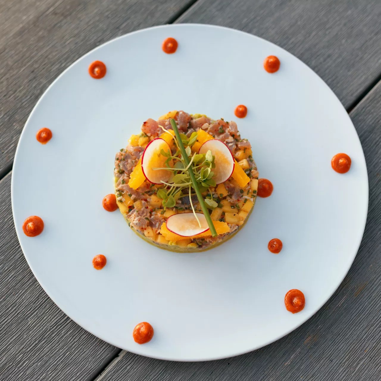 To highlight summer’s bounty and help keep the mood breezy, local chefs have created bright, fresh menus to be enjoyed outdoors. Some have augmented their traditional offerings with floral notes and vibrant citrus flavors, while others have designed a whole new list of light, colorful offerings to pair with refreshing cocktails.