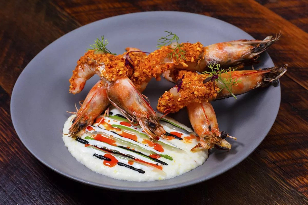 2. Tree of Life at El Cielo. In a city besotted with myriad renditions of yuca, chef Juan Manuel Barrientos’ variation – along with every other meticulously plated dish on the menu at El Cielo – looks more like a centerpiece than dinner. Inspired by the traditional Colombian bread pan de yuca, the Tree of Life is shaped to resemble a bonsai tree, supported by copper wires and a rock formation, and it arrives smoking in a cloud of dry ice. Bite into the yuca bread, seasoned with touches of paprika and basil, or try it with its traditional tomato, onion, and cacao dipping sauce. 31 SE Fifth St., Miami; 305-755-8840; elcielorestaurant.com. Cape Canaveral prawns