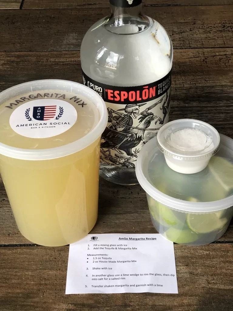 American Social’s Family Style Margarita Kit ($35) is the perfect alternative to bellying up to the bar. Each kit includes all the necessary elements for a traditional batch of margaritas and serves around four drinks. Pair it with Taco Fiesta pack ($35), for an epic Mexican night in. To order, call the restaurant directly.