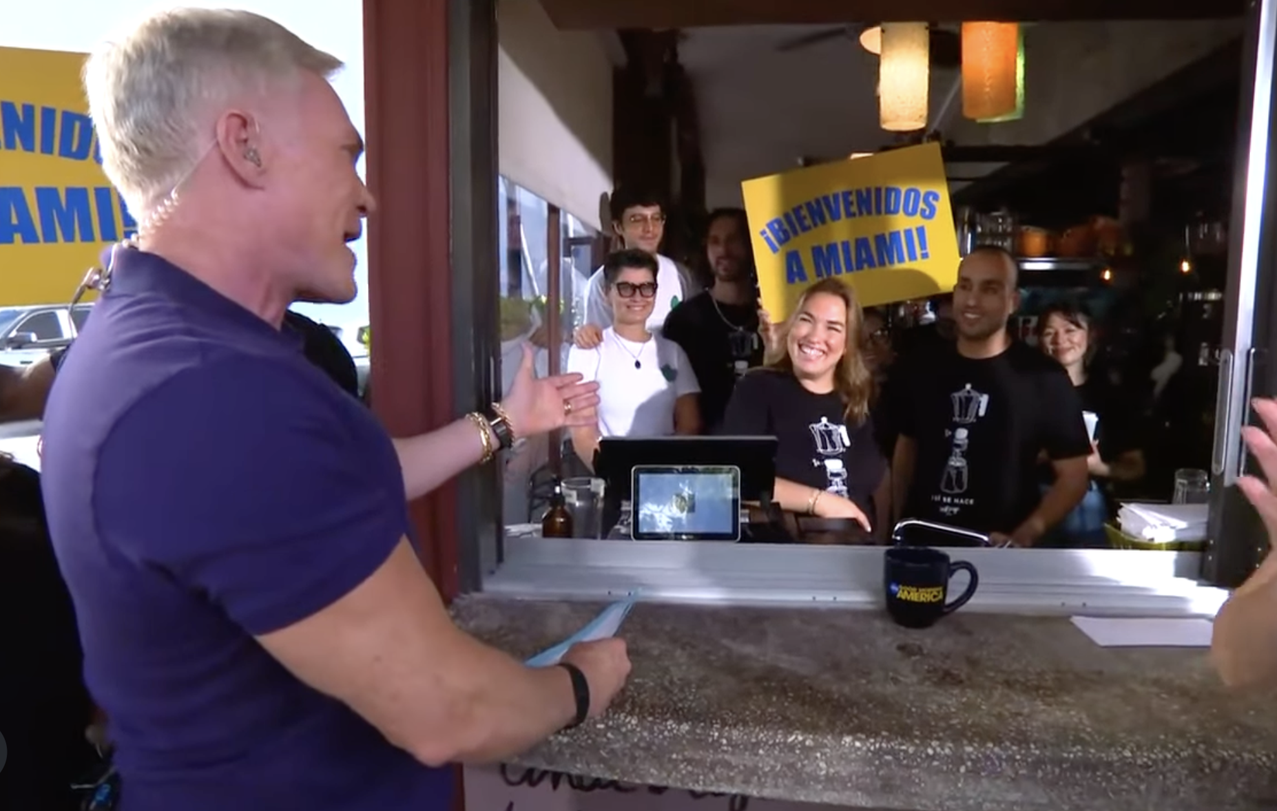 ABC Miami 18 and WSVN’s Belkys Nerey joined Champion for the segment alongside her longtime co-anchor and friend Craig Stevens. As she is Cuban-American, she truly gets why Tinta is so special – and her favorite part? The ventanitas, which are the small ordering windows installed at most classic Cuban cafés in Miami. “The ventanita is somewhere you park your car, and you go up to the ordering window to grab your coffee,” explains Nerey. “There’s no sitting. You grab it, and you drink it quickly. It’s that boost you need to start your day. You only need a little bit because it’s strong,” she says with a laugh.